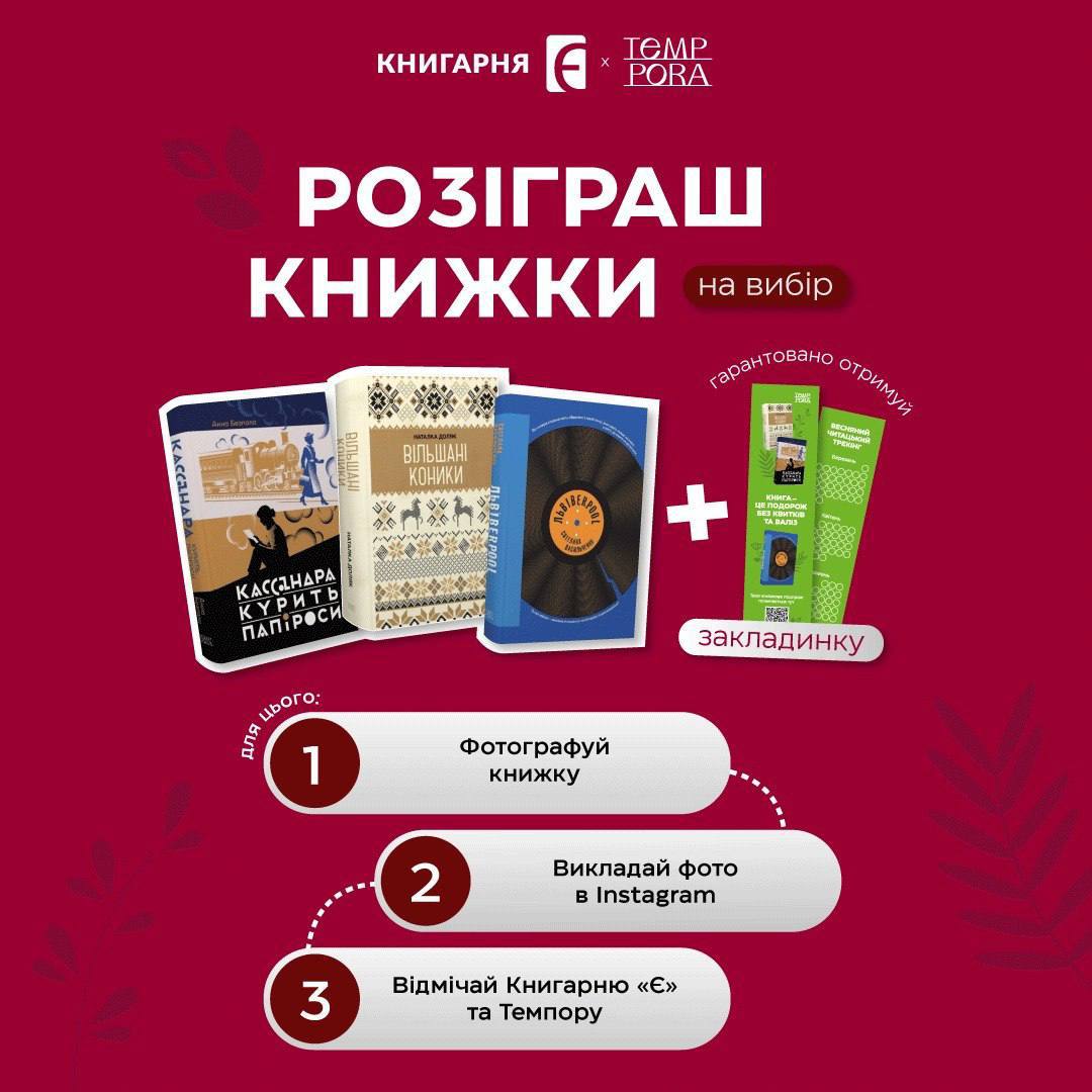 – викласти фото в сторис Instagram та теґнути сторінки «Книгарня «Є» та видавництва Темпора (@tempora.publishing та @knyharnia_ye