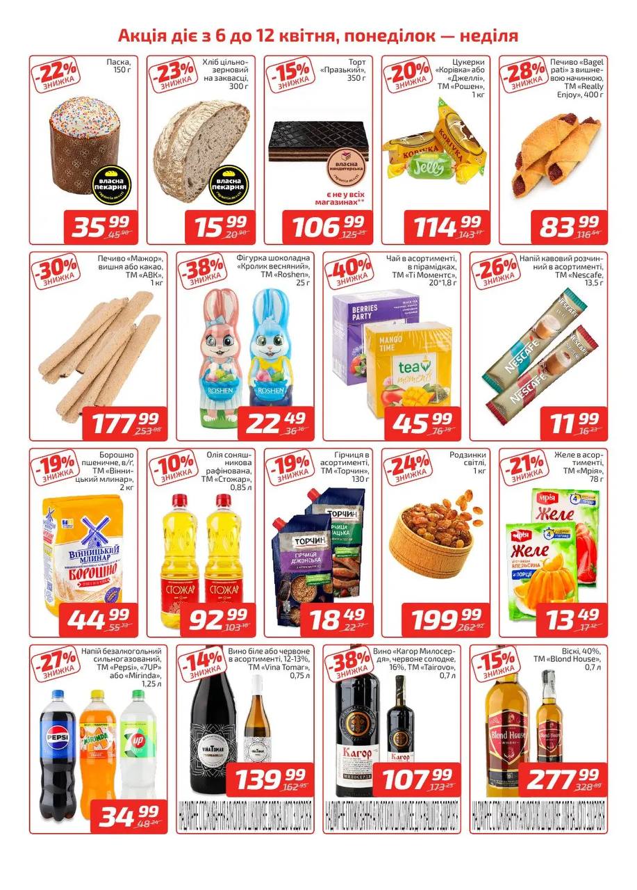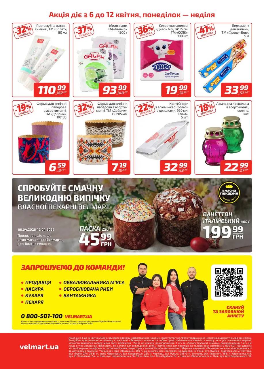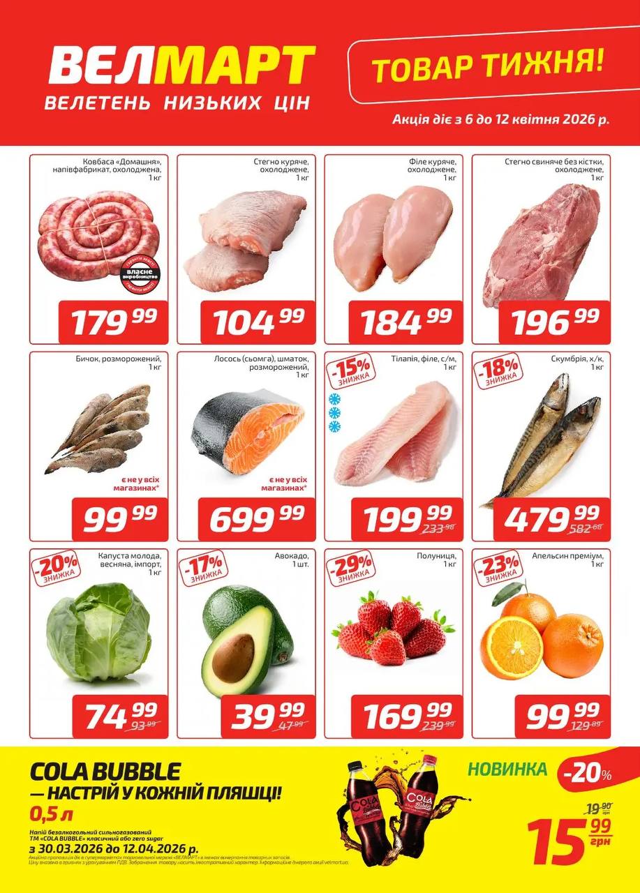 Акції супермаркетів Велмарт Закінчується 1д 03г:18хв Оновлені знижки у Велмарт 13.04-19.04 Чи актуальна ця пропозиція? Так Ні Надіслати Відмінити Дякуємо за… Поділився solo 14 Квітня, 2026 2