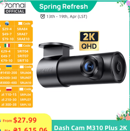 70mai Dash Cam M310 2K 1440P 143°FOV F1.55 Smart Voice Control 24H Паркувальний захист нічного бачення 70mai M310 2K Автомобільний відеореєстратор