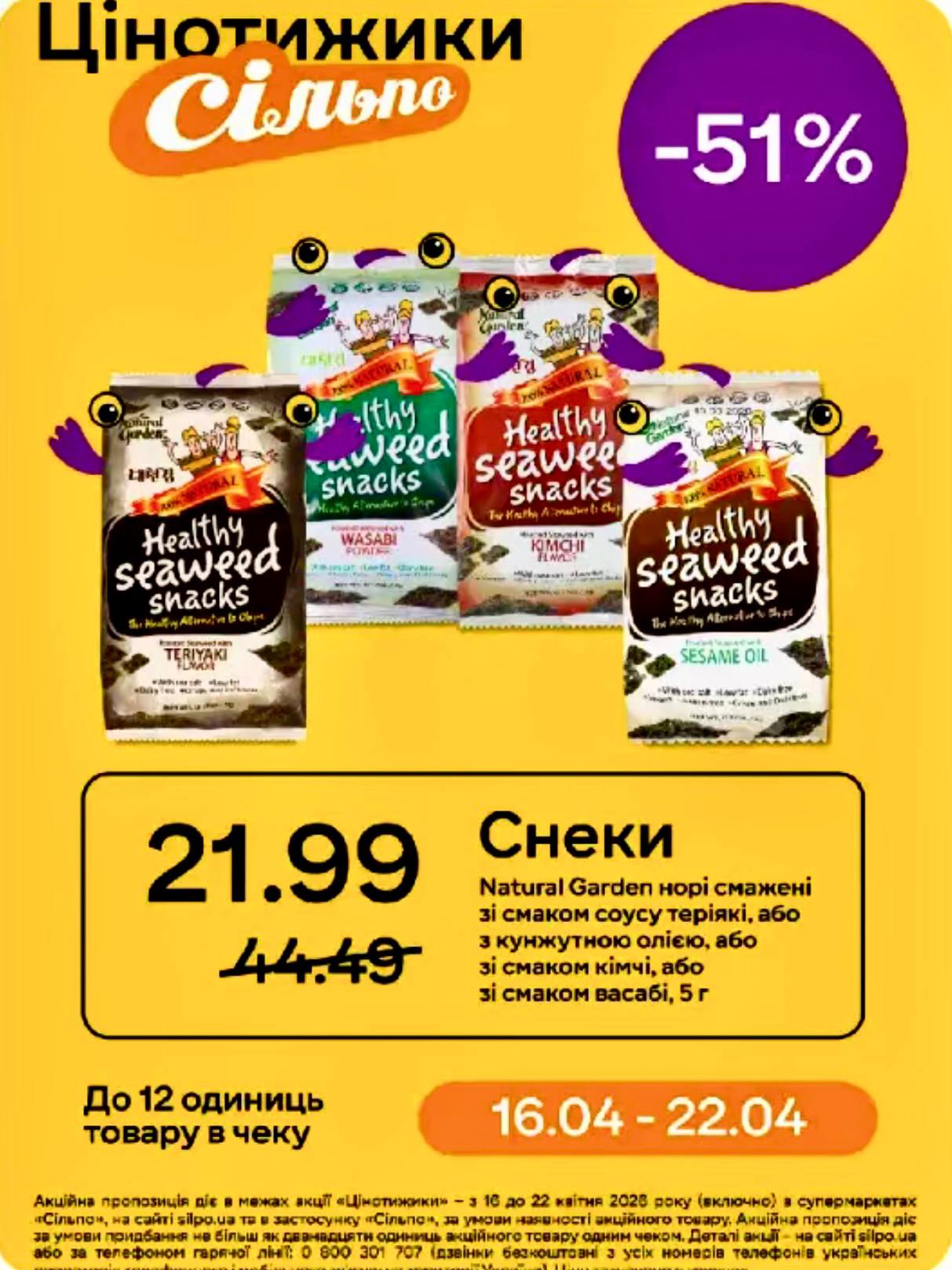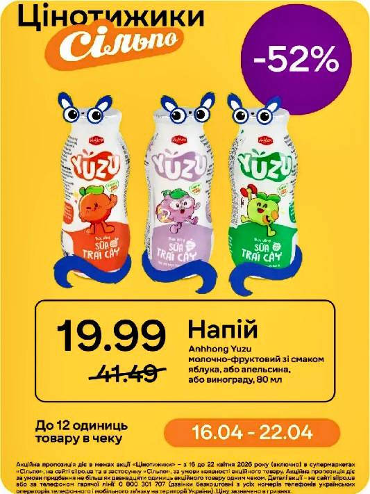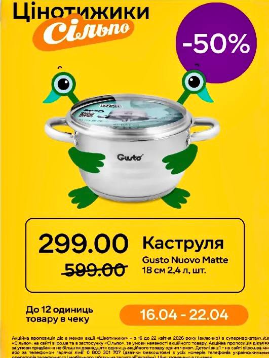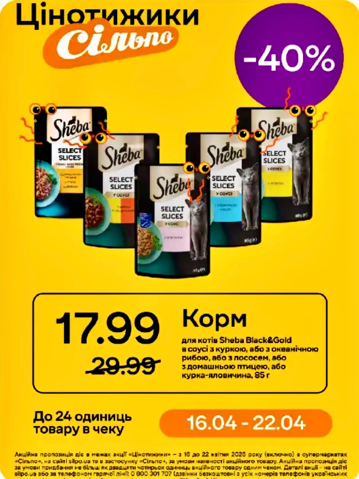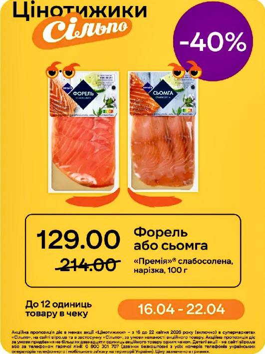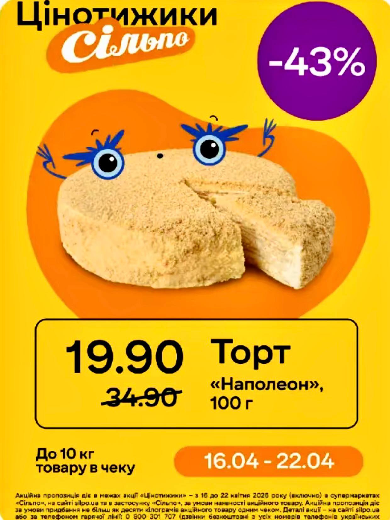 Цінотижики в Сільпо Знижки аж до -56% діють з 16.04 по 22.04